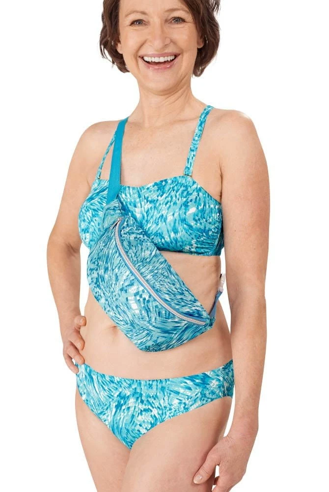 Passend zur Bademoden-Serie Manila oder auch zu allen anderen Blautönen präsentiert sich die handliche Bauchtasche Manila in herrlichem Aquamarin. Die moderne Cross-Body-Umhängetasche ist das zeitlose Must-Have dieses Sommers. Bequem zu tragen ist die leichte Tasche kompatibel mit jedem Outfit. Der längenverstellbare Riemen lässt sich variabel anpassen. Ein silberner Reisverschluss sorgt für die sichere Verwahrung Ihrer Lieblingsdinge.