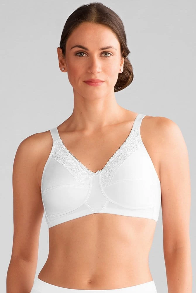 Der designstarke und funktionale Prothesen BH ist auch für große Größen empfehlenswert. Ihre weiche Silikonbrustprothese rutscht nicht heraus und klappt beim Vorbeugen nicht nach vorn weg. Sicher liegt die Brustprothese eng am Körper. Der gute Sitz wird durch geteilte Cups im Prothesen-BH für alle Größen unterstützt. Durch eine feine Spitze entlang des Ausschnitts und die Schleife mit zierlicher Perle am Steg erhält der Prothesen BH eine charmante Note.