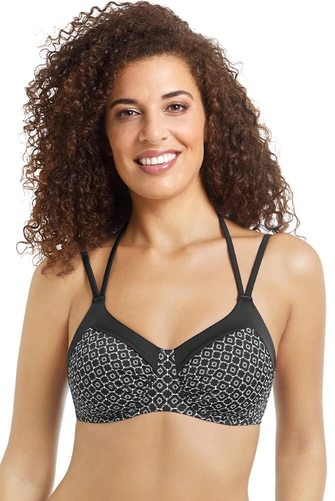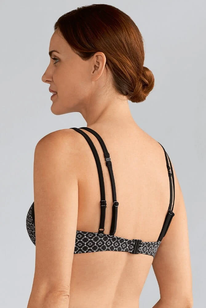 - Prothesen Bikinioberteil Ayon ist ein bügelloses Soft-BH-Badetop mit geometrischem schwarz-weiß Print