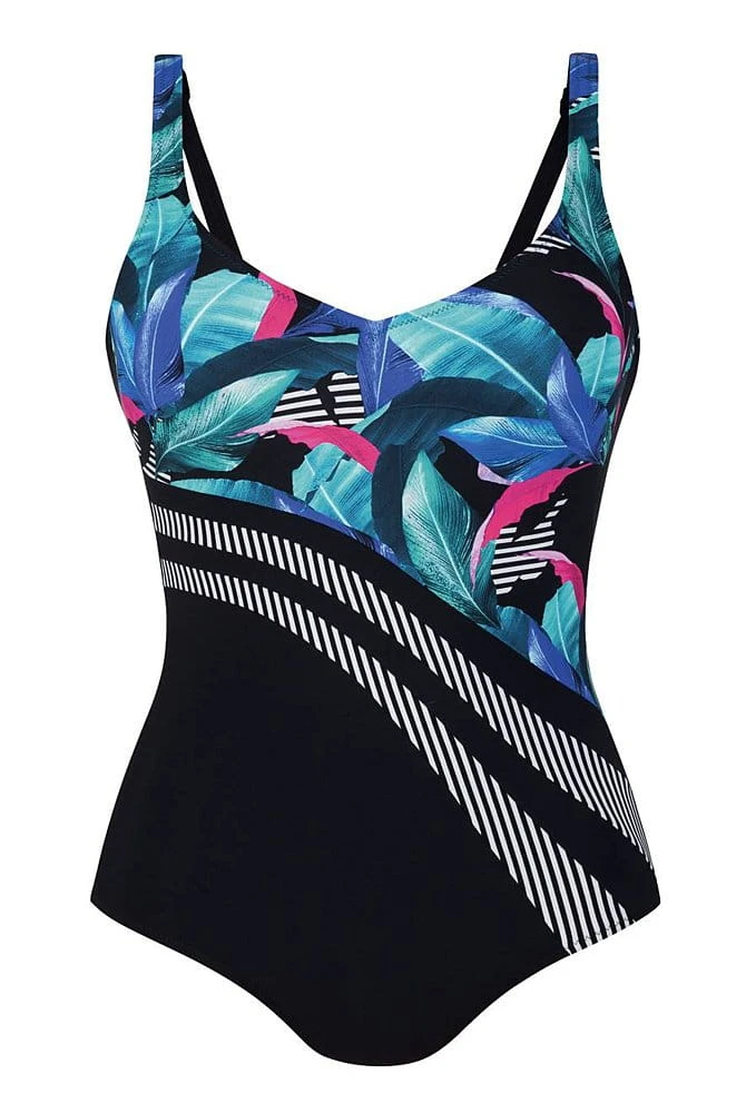 Das Leben ist schöner mit Sand zwischen den Zehen! Und der Badeanzug Luella ist mit seiner frischen und modernen Anmutung das perfekte Outfit dafür. Kontrastreiche Blätter in leuchtenden Blau- und Smaragdtönen kombiniert mit Figur schmeichelnden Schwarz-Weiß Streifen inszenieren mit „slimming effect“ eine unwiderstehlich schmale Taille. Softschalen, funktionelle Fütterung im Vorderbereich und verstellbare Träger machen den Anita Badeanzug der Serie Utopia zum absoluten Must-have für modisch anspruchsvolle Schwimmerinnen!