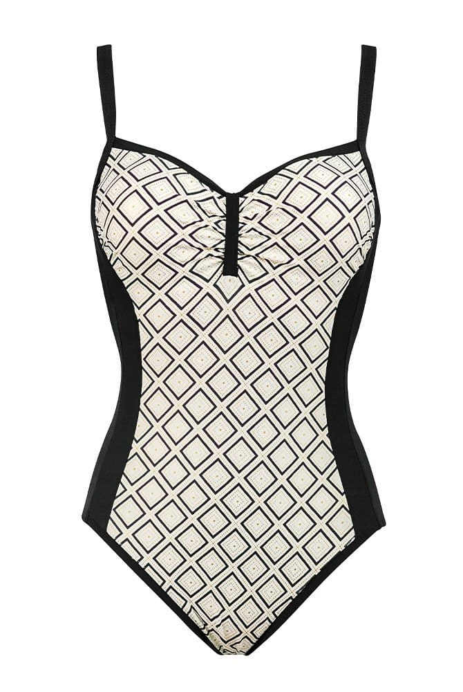 Zeitlos und verführerisch präsentiert sich unser Badeanzug der Lidea-Serie Shiny Honeycomb. Das Design wurde inspiriert von den Farben der Wüste und den Strahlen der Sonne. Die ungefütterten Cups des eleganten Einteilers schmiegen sich weich an die Haut und trocknen schnell.
