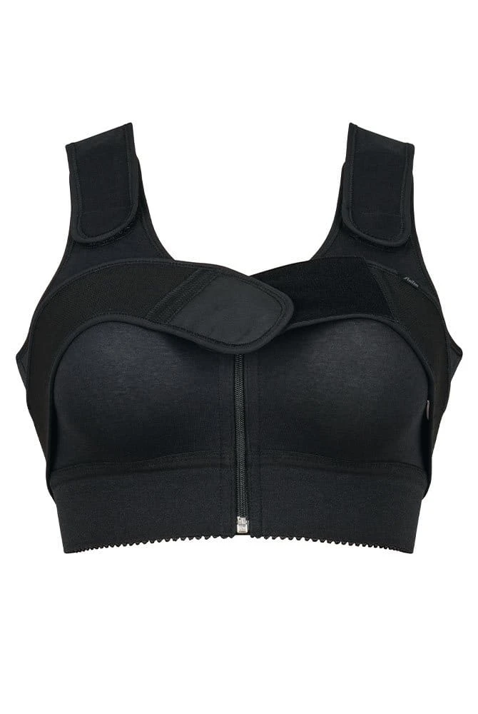 - zum Öffnen und Schließen praktischer Vorderverschluss, bestehend aus Reißverschluss mit darunterliegendem Hakenverschluss (2 Häkchen)