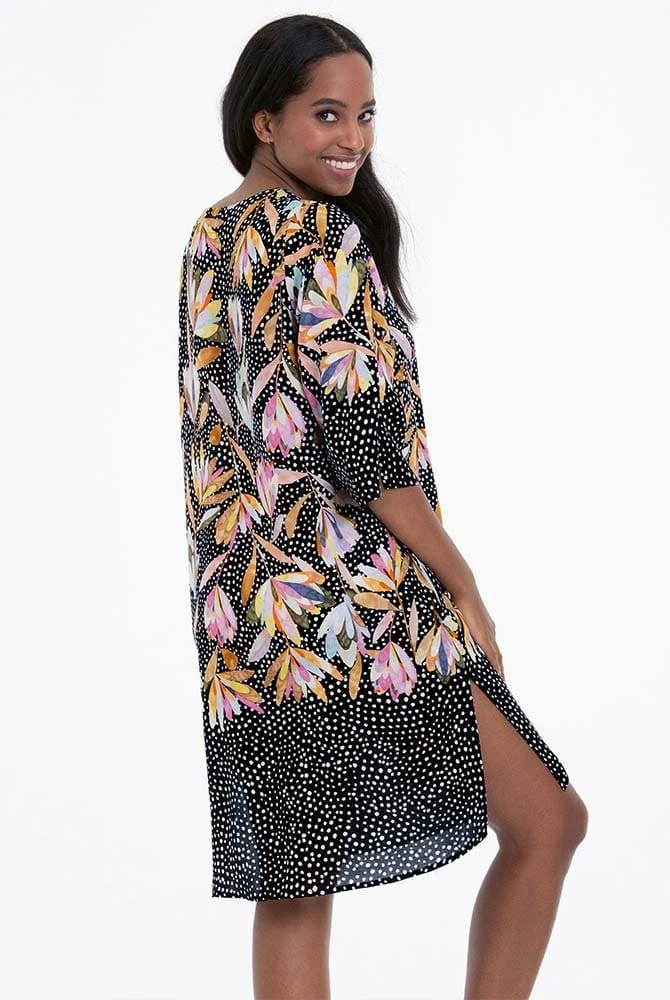 Mit Strandtunika Garda von Anita machen Sie im Urlaub alles richtig. Die elegant geblümte Tunika Garda präsentiert sich optimal zu Ihrer Bademode in einem wunderbar femininen körperumspielenden Schnitt. Der weiche Viskose-Stoff trocknet schnell und fügt sich leicht in jedes Reisegepäck. Der gerade knielange Schnitt der wunderschönen Tunika Garda fällt luftig leicht und wird ergänzt durch halblange Ärmel. Der attraktive V-Ausschnitt akzentuiert optimal Ihr Dekolleté.